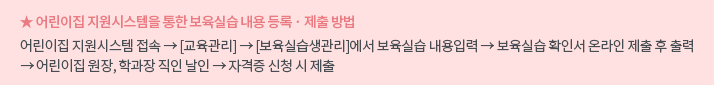½Ç½À ±â°ü | -Á¤¿ø 15¸í ÀÌ»óÀ¸·Î Æò°¡ÀÎÁõÀ» À¯ÁöÇÏ´Â ¾î¸°ÀÌÁý -¹æ°úÈÄ °úÁ¤À» ¿î¿µÇÏ´Â À¯Ä¡¿ø |