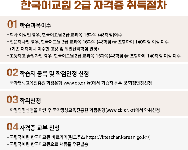 Ãëµæ ÇÐÀ§, ÀÚ°ÝÁõ | ¿Ü±¹¾î·Î¼ÀÇ Çѱ¹¾îÇÐ Çлç ÇÐÀ§, Çѱ¹¾î±³¿ø 2±Þ |